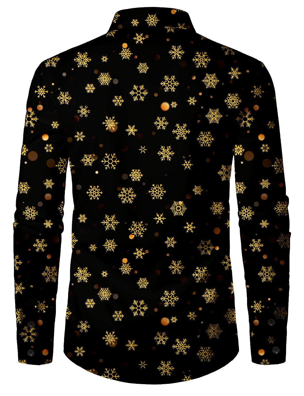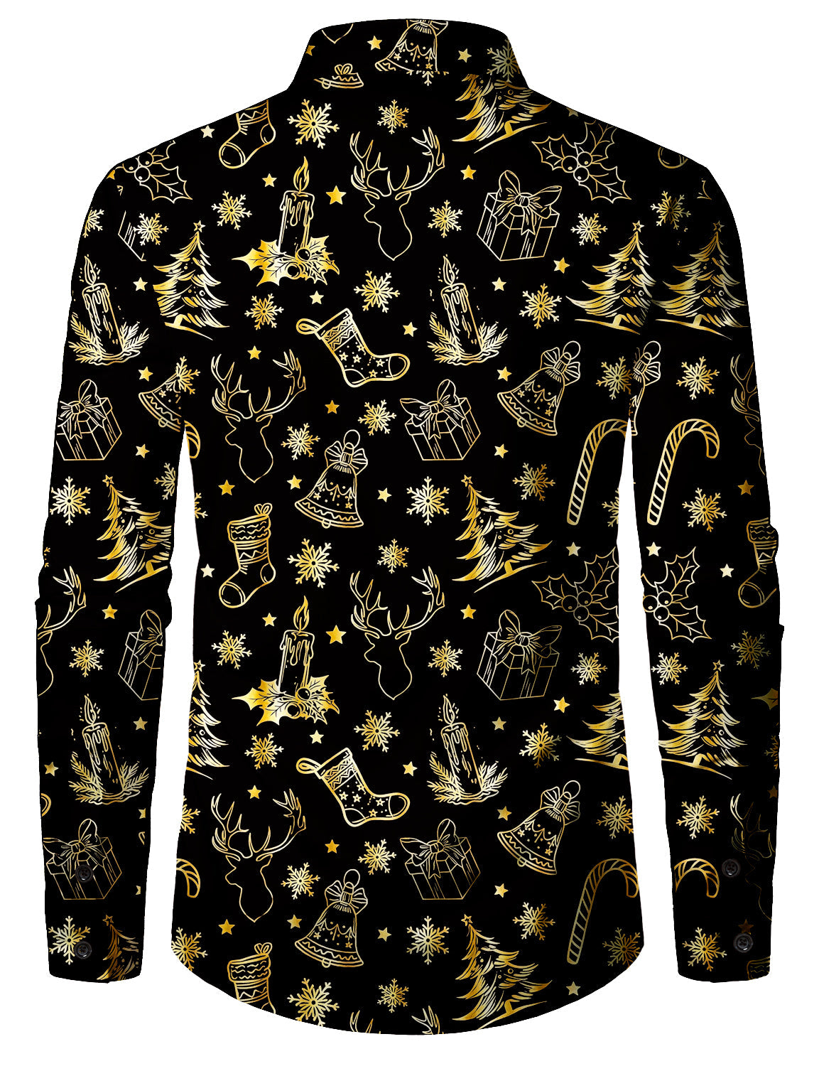 Chemise de Noël à manches longues pour homme avec imprimé joyeux Noël doré