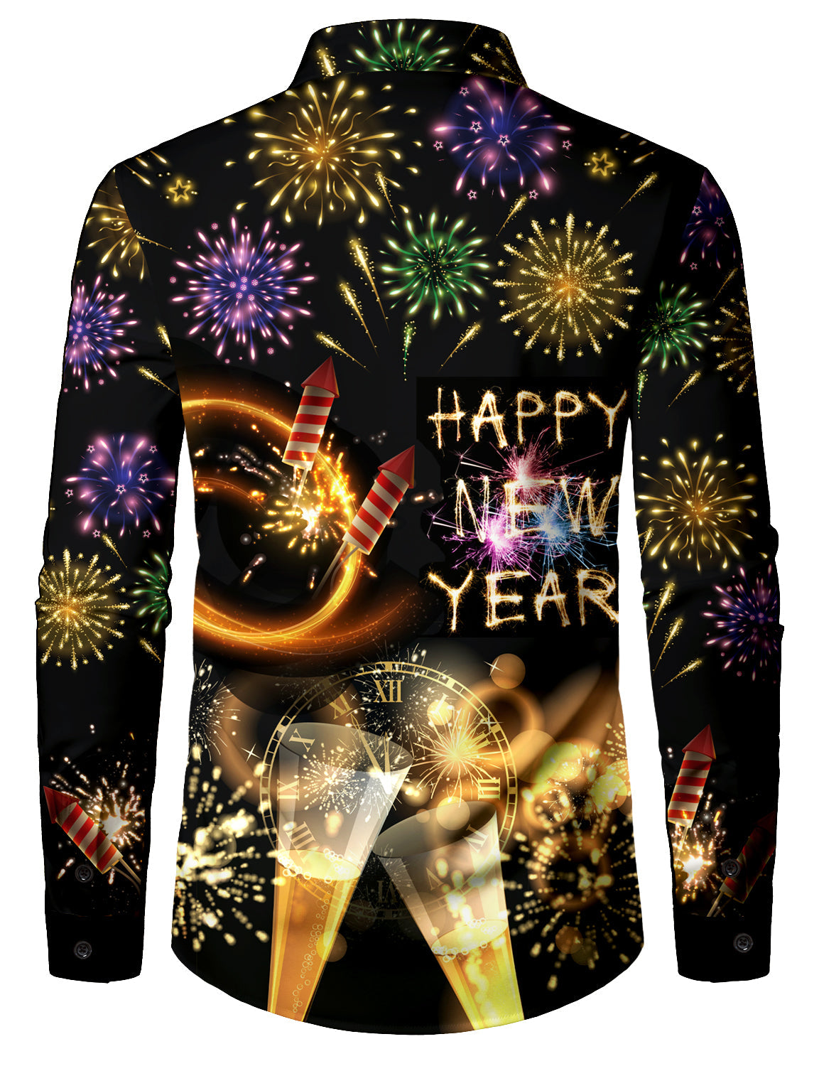 Chemise de vacances à manches longues pour homme avec imprimé feux d'artifice « Bonne année »