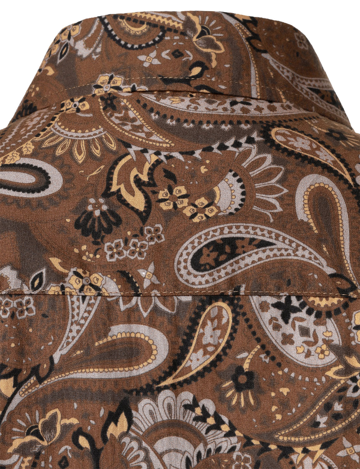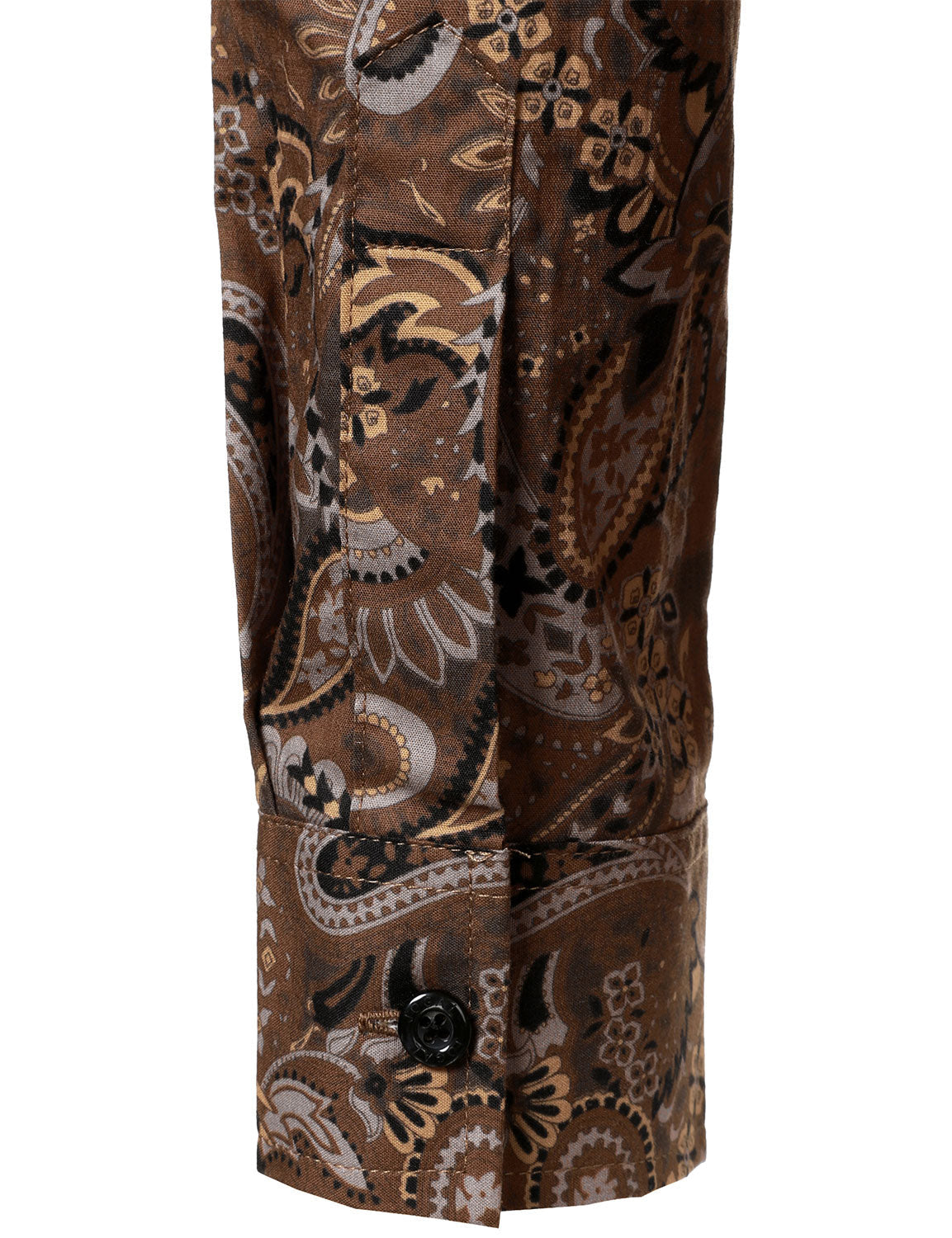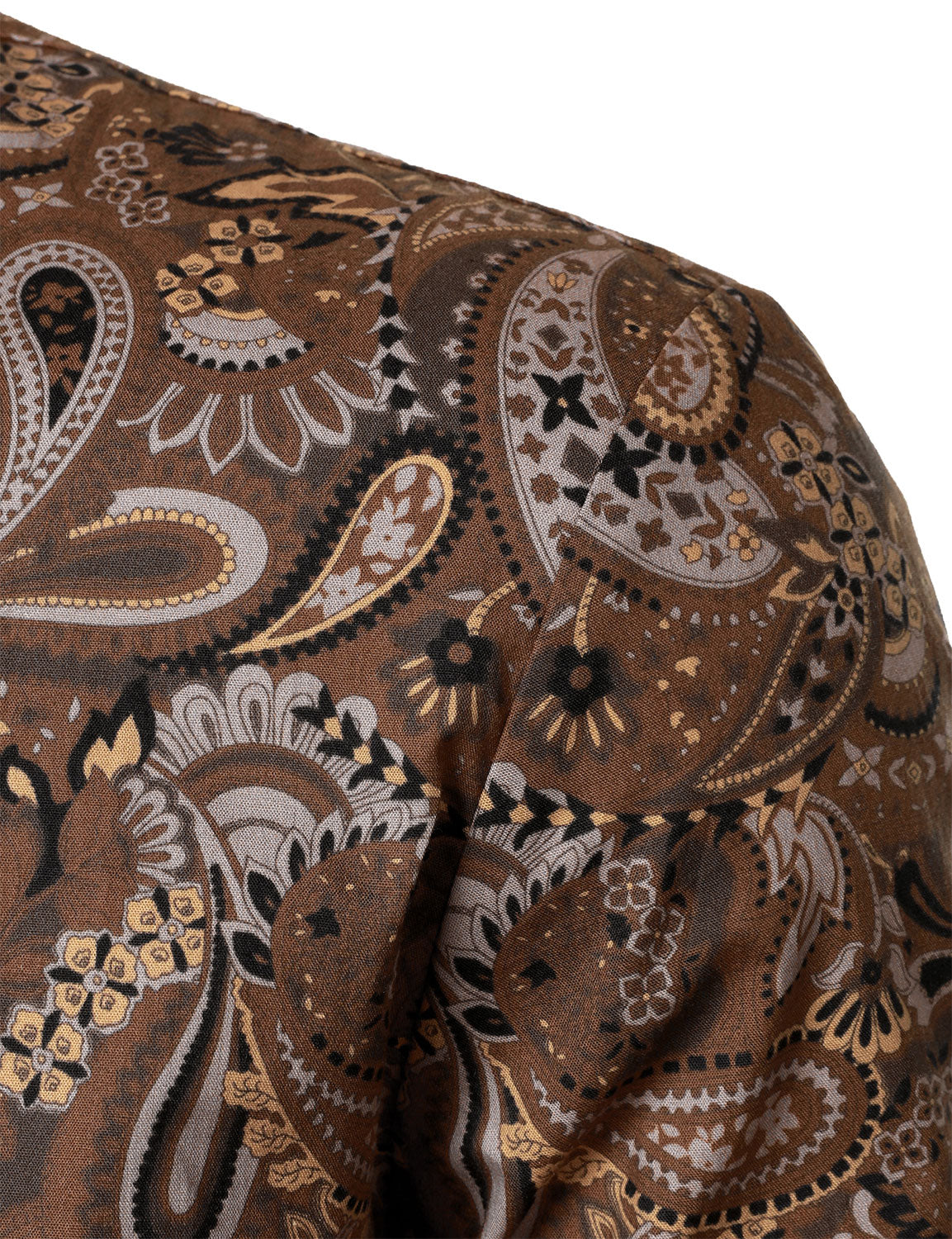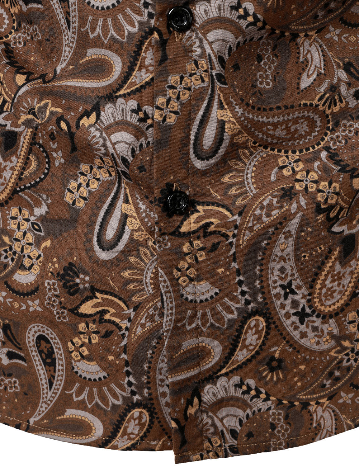 Chemise à manches longues en coton respirant marron à imprimé cachemire rétro pour homme