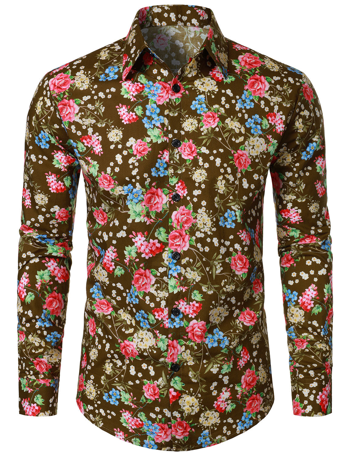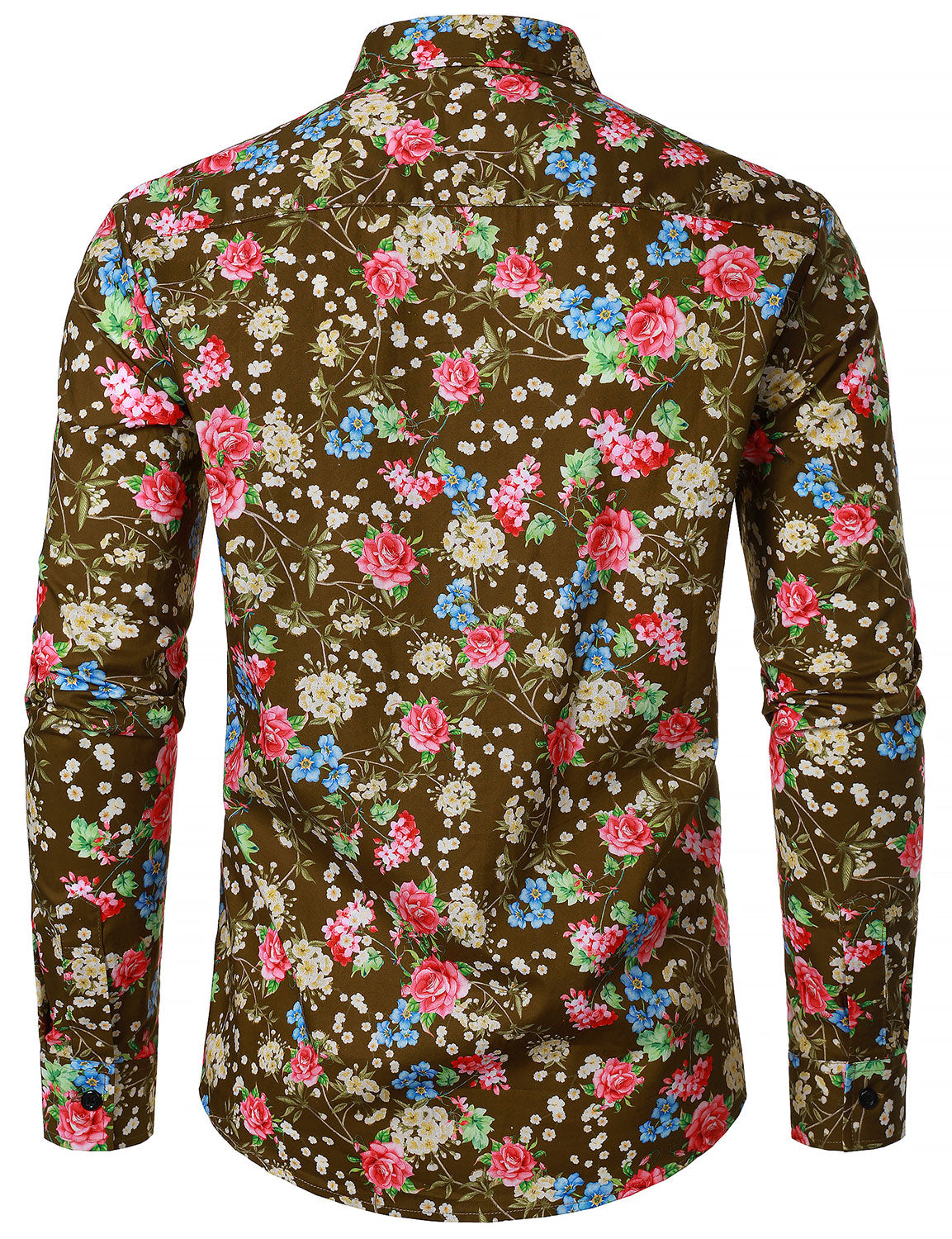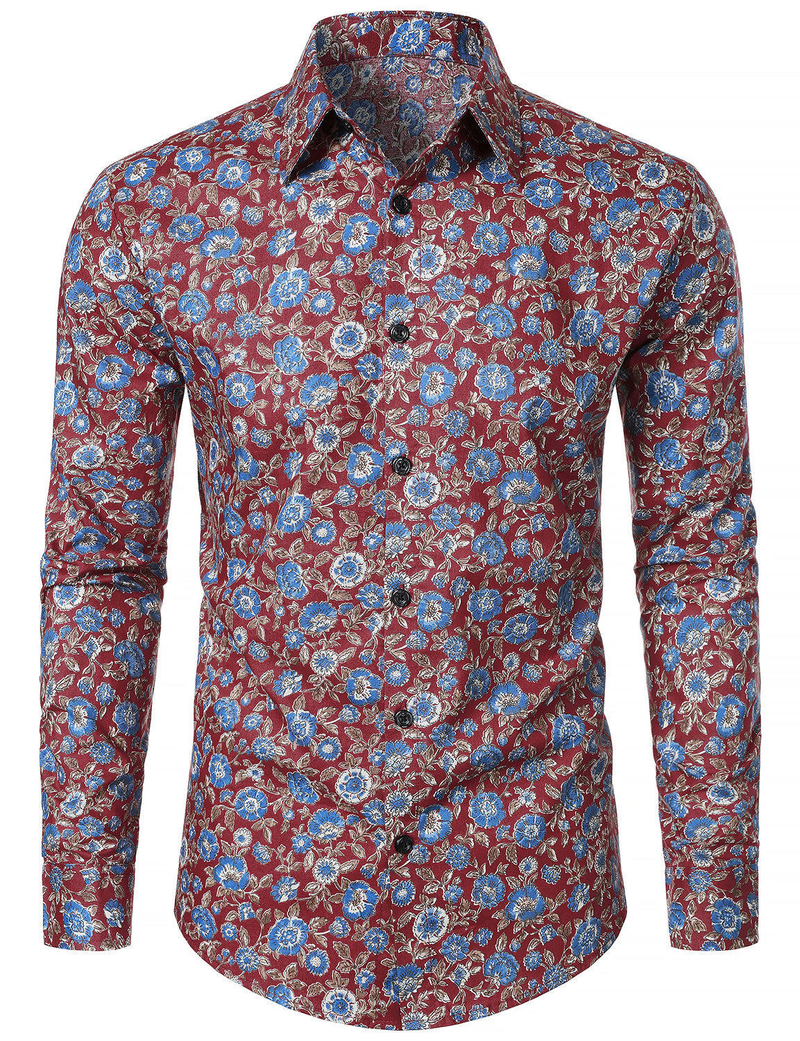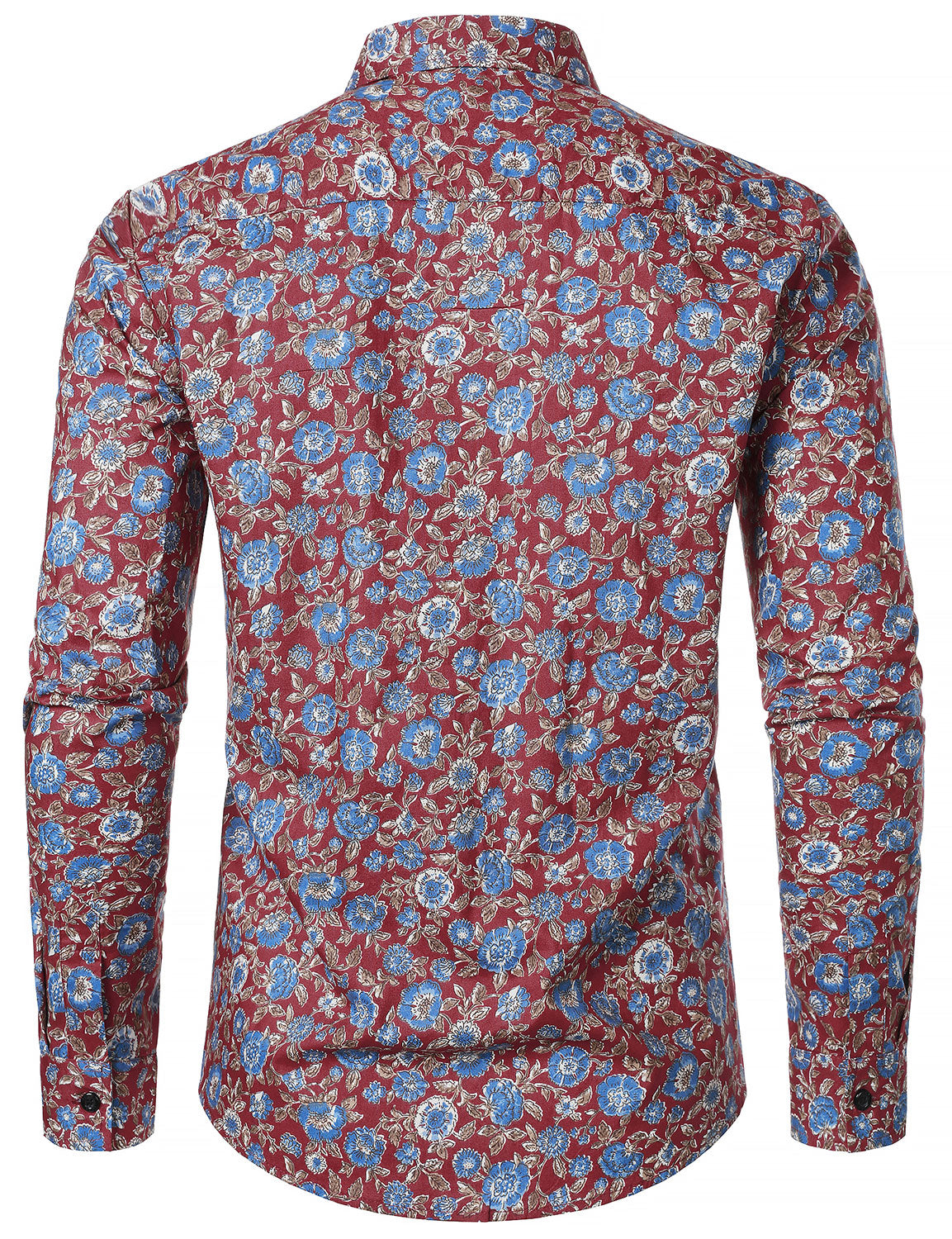 Chemise à manches longues en coton respirant à imprimé floral des années 70 pour homme