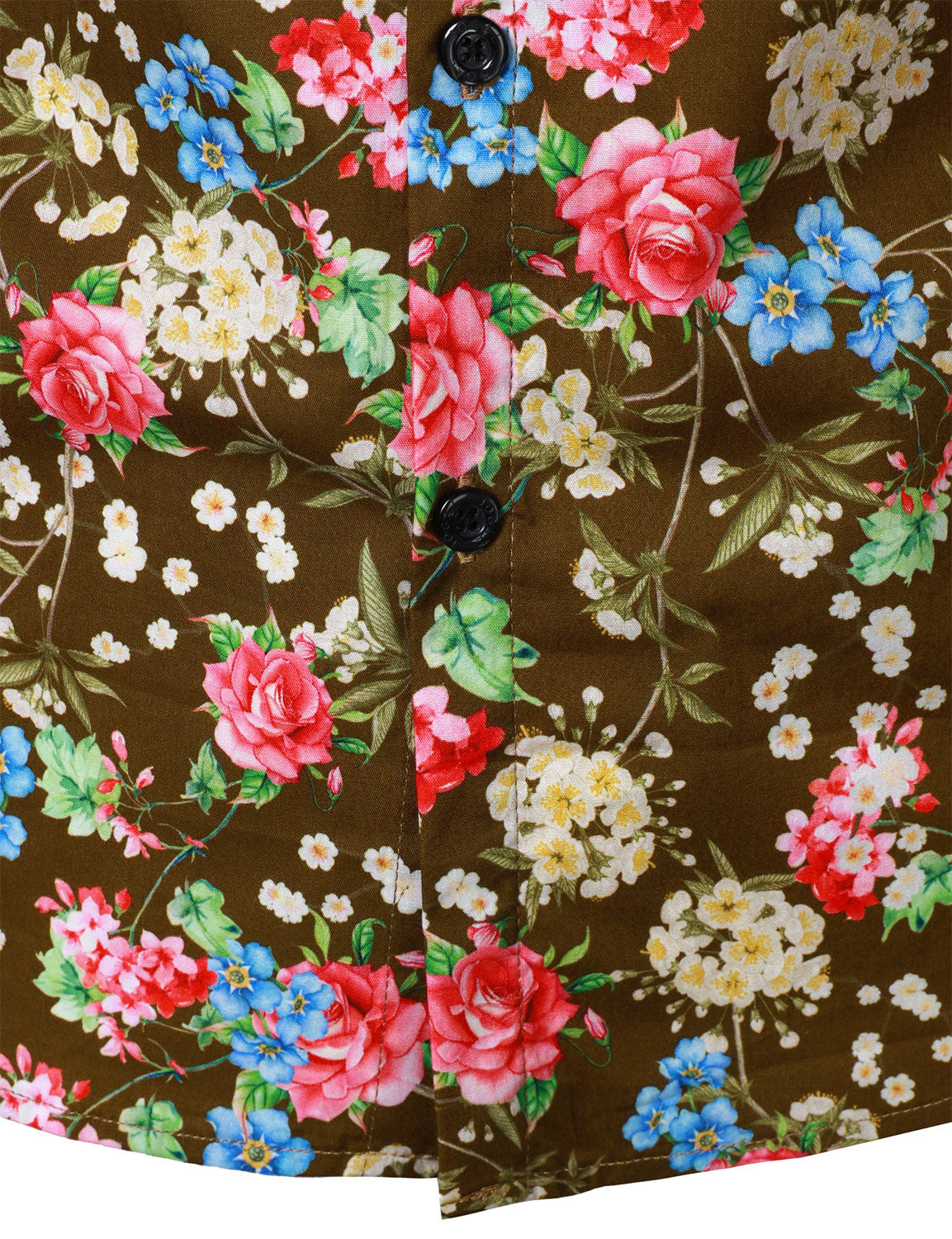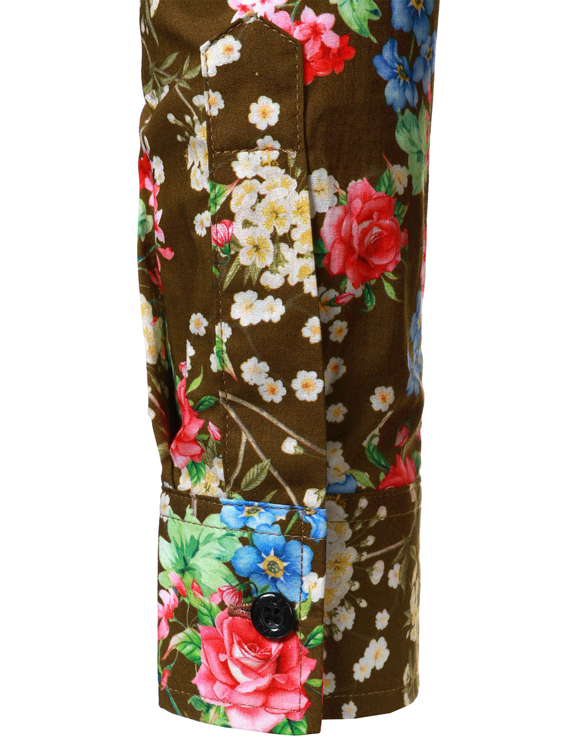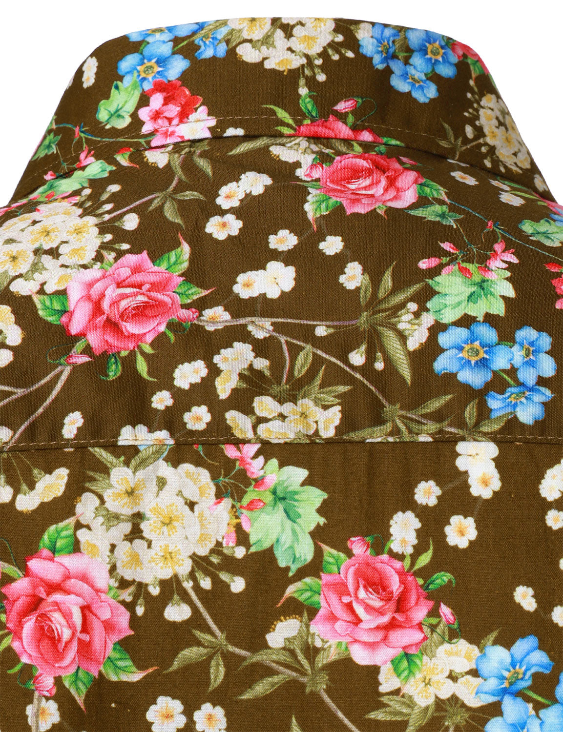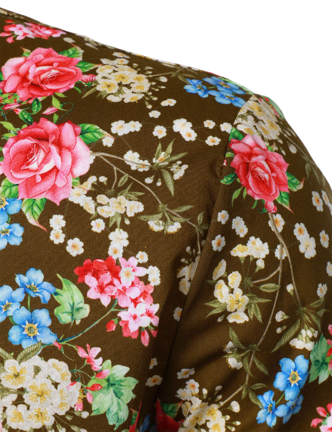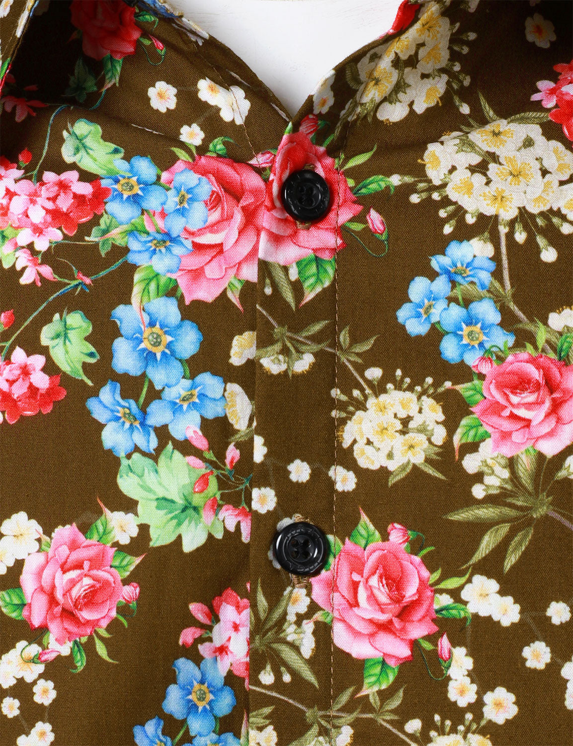 Chemise à manches longues marron en coton respirant à imprimé floral des années 70 pour homme