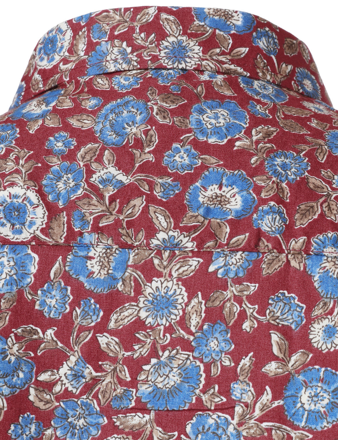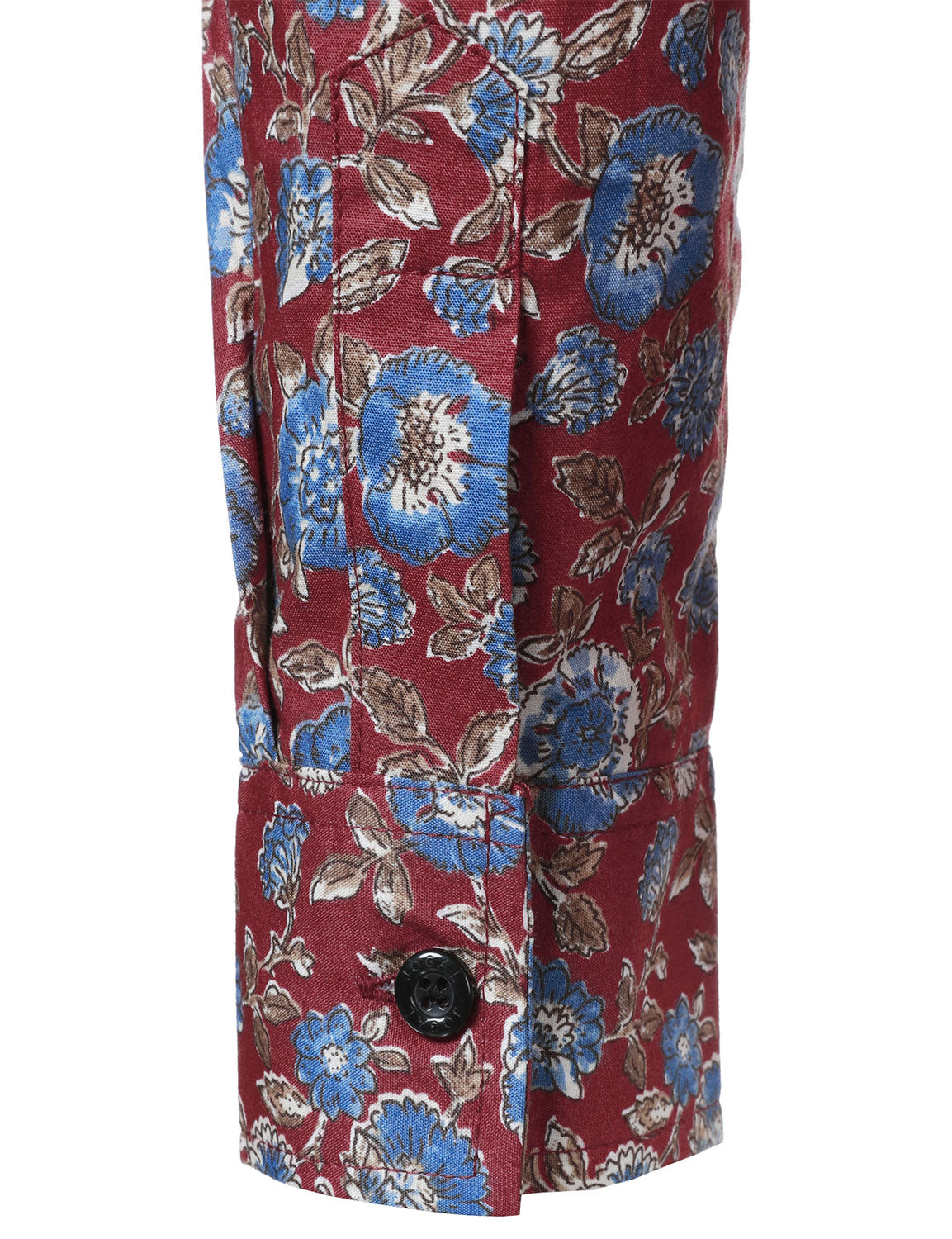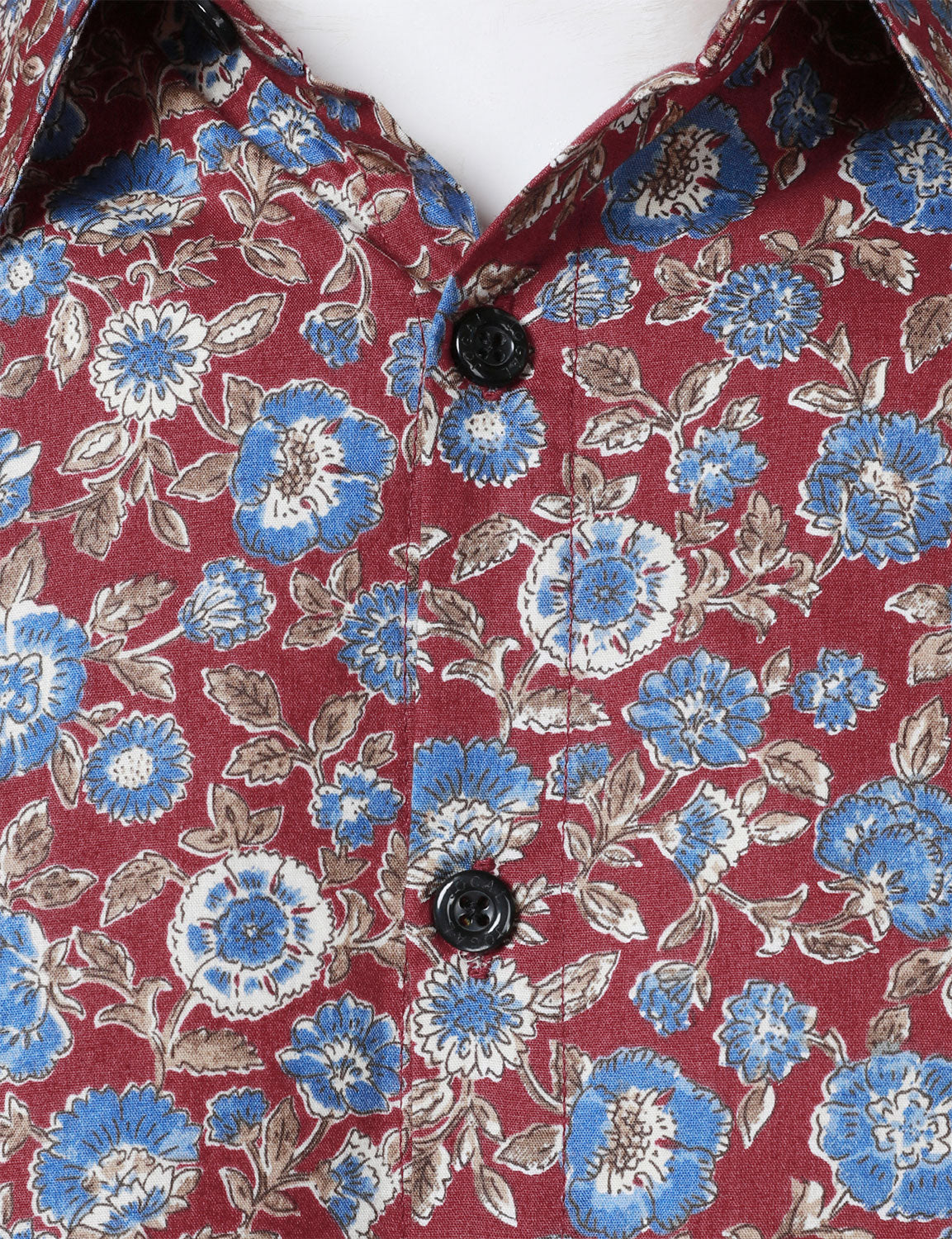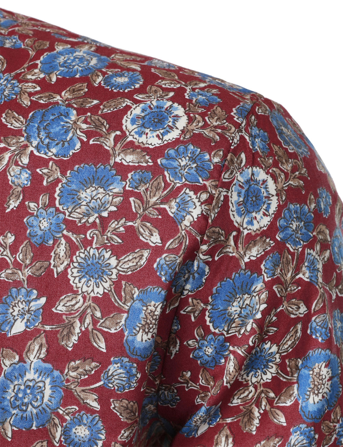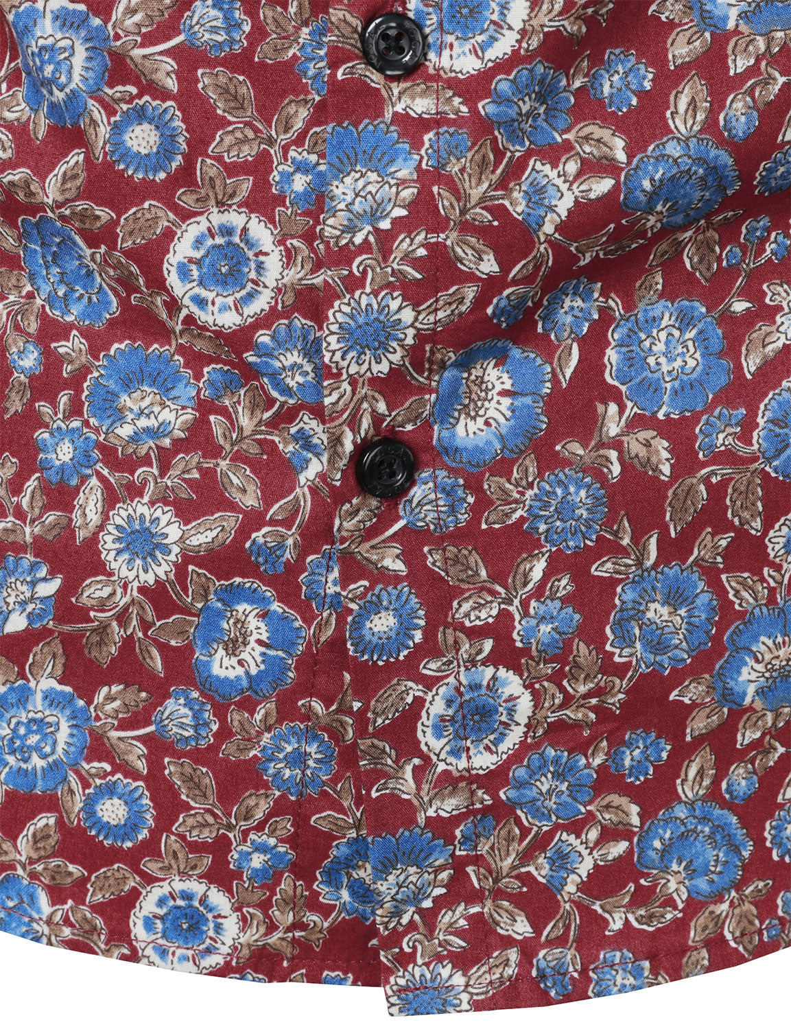 Chemise à manches longues rouge en coton respirant à imprimé floral des années 70 pour homme