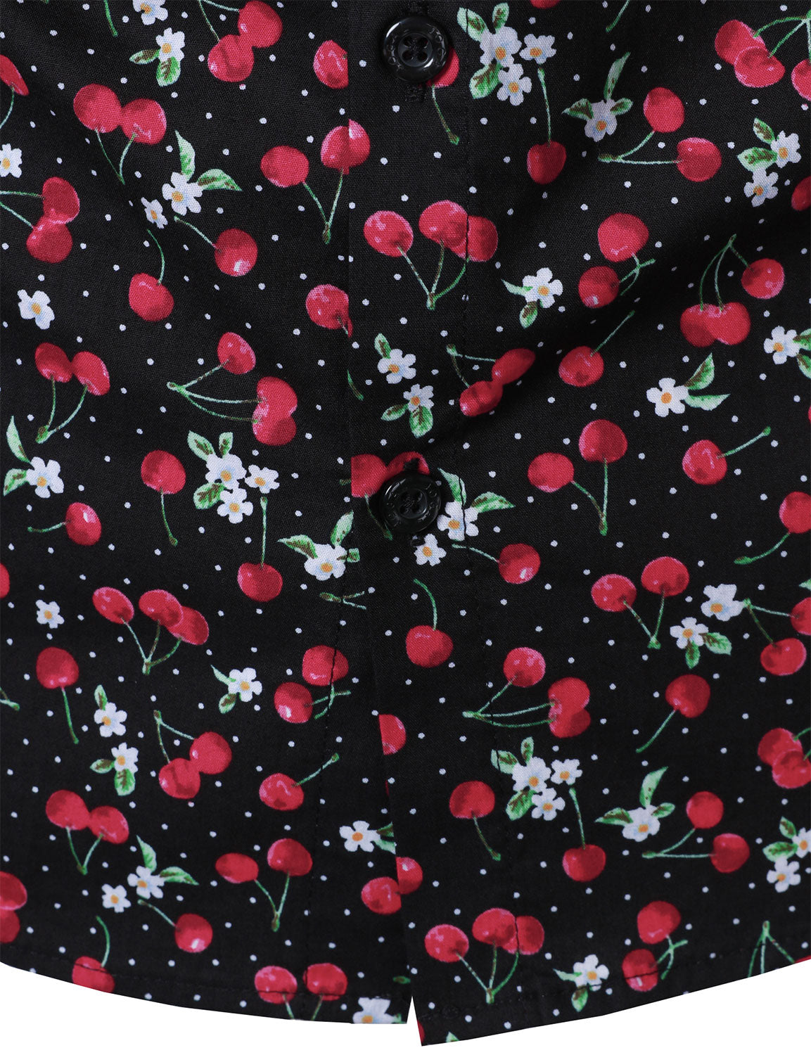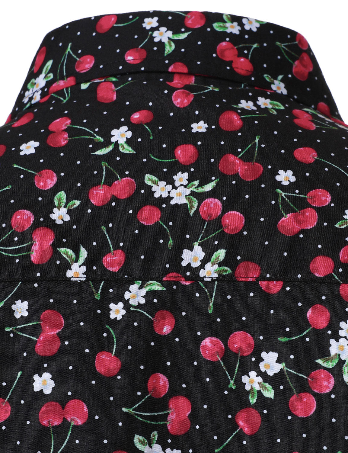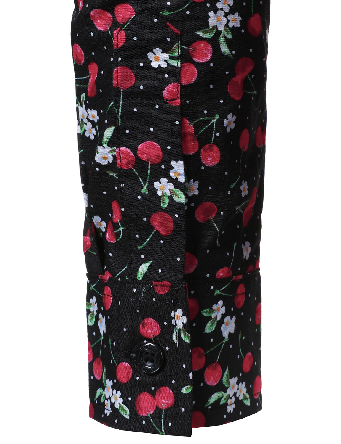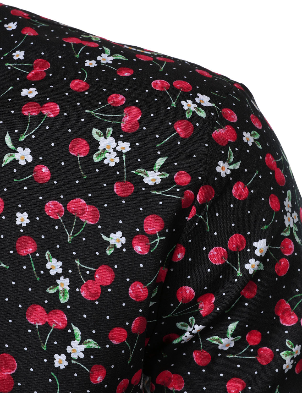 Chemise à manches longues en coton respirant à imprimé cerises pour homme, noire