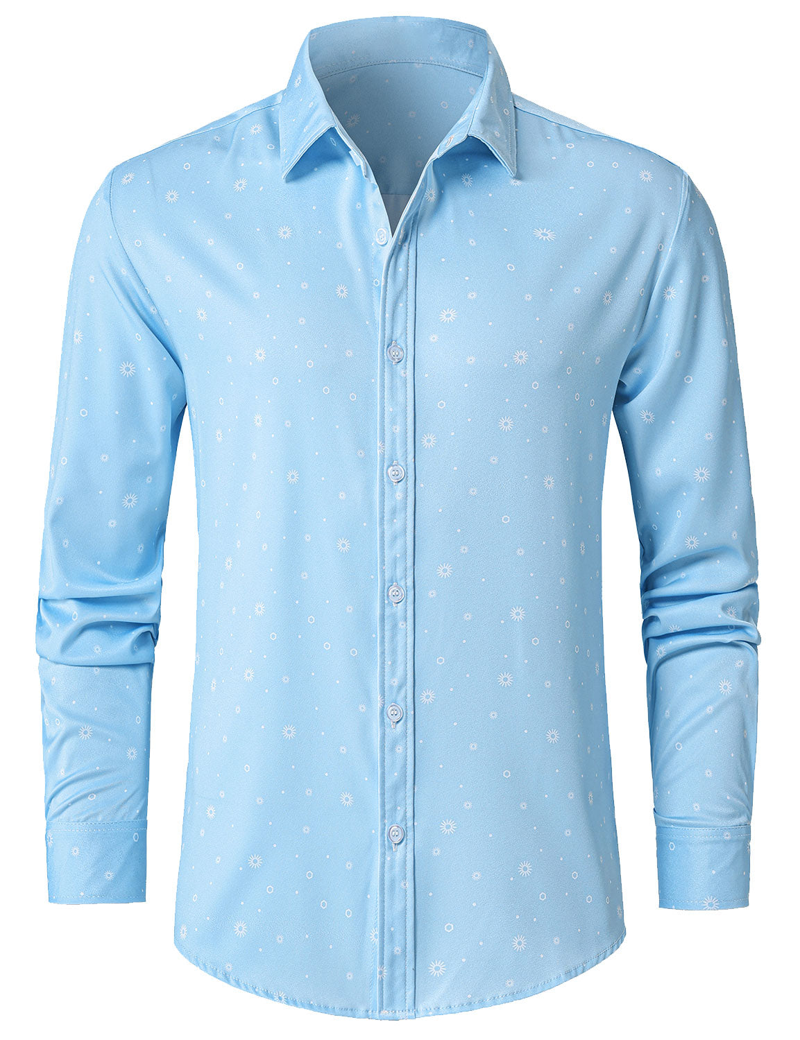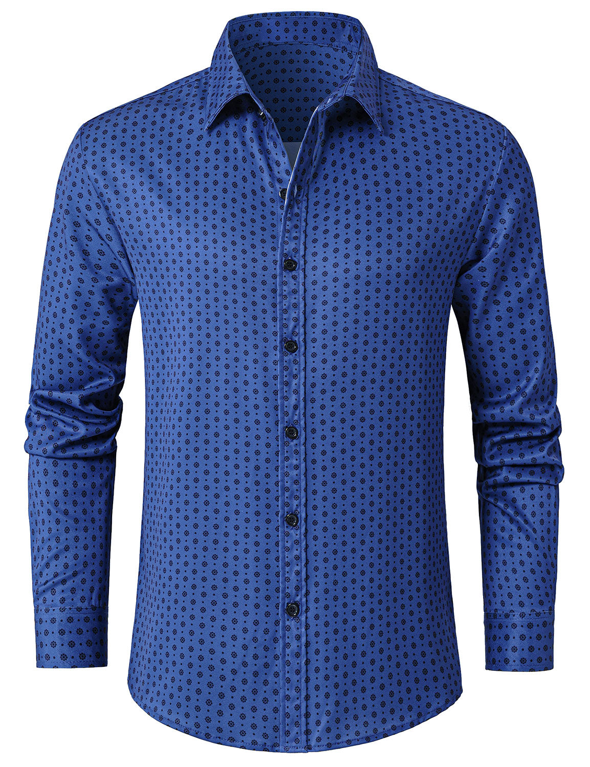 Chemise à manches longues bleue décontractée à imprimé pour homme