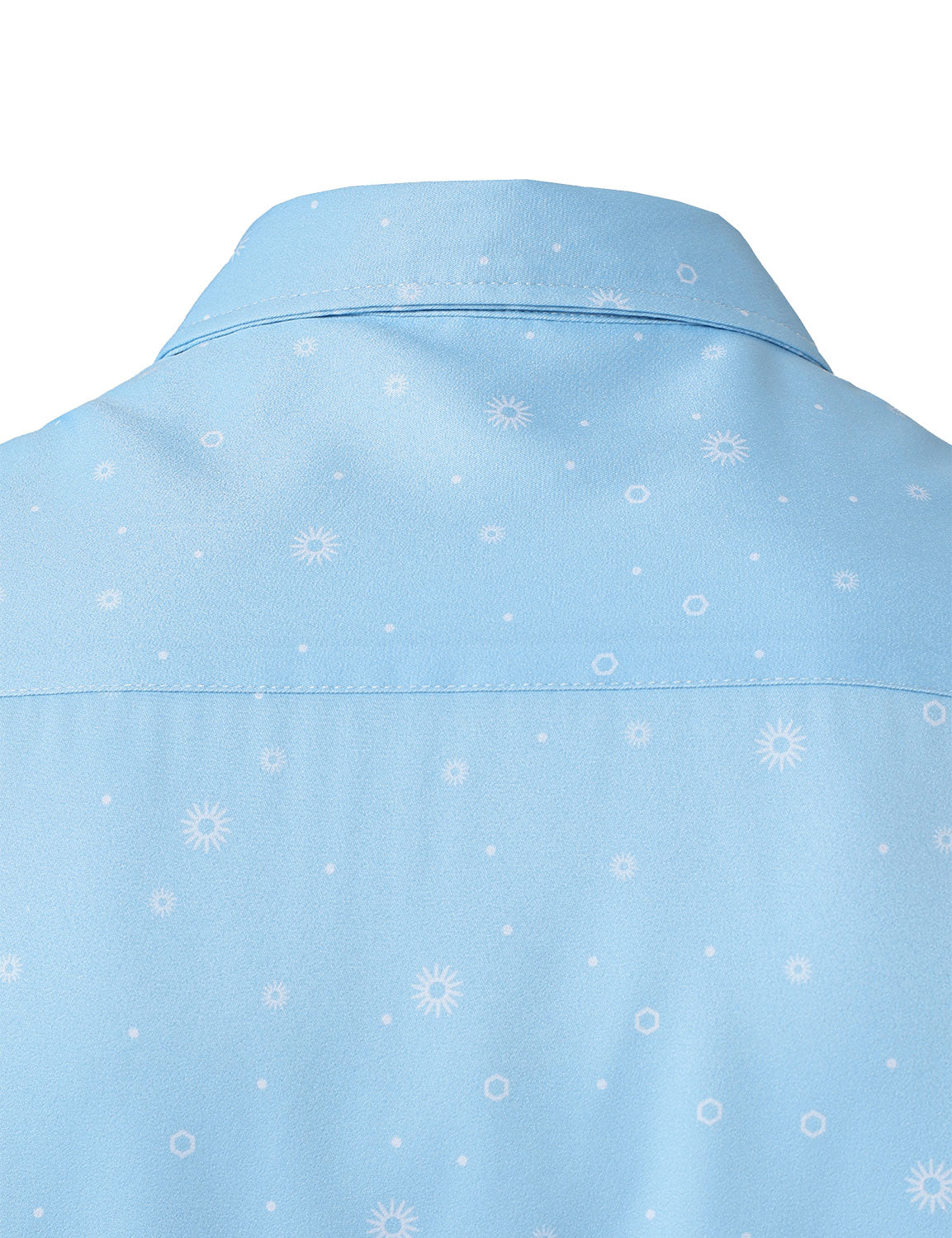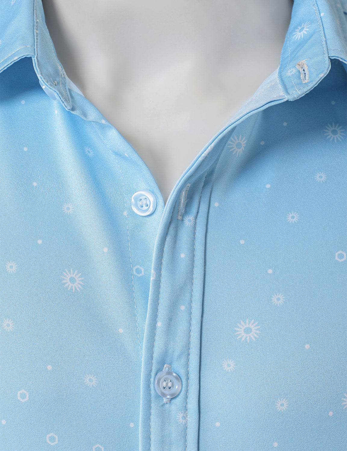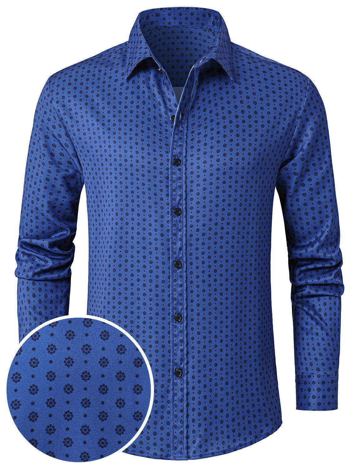 Chemise à manches longues bleue à imprimé géométrique rétro pour homme