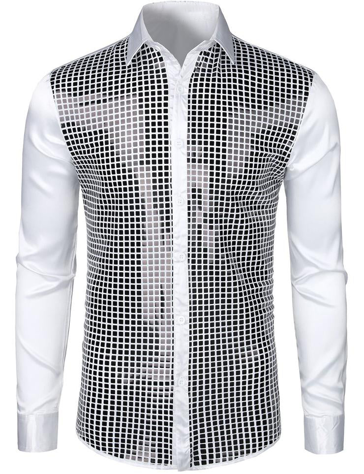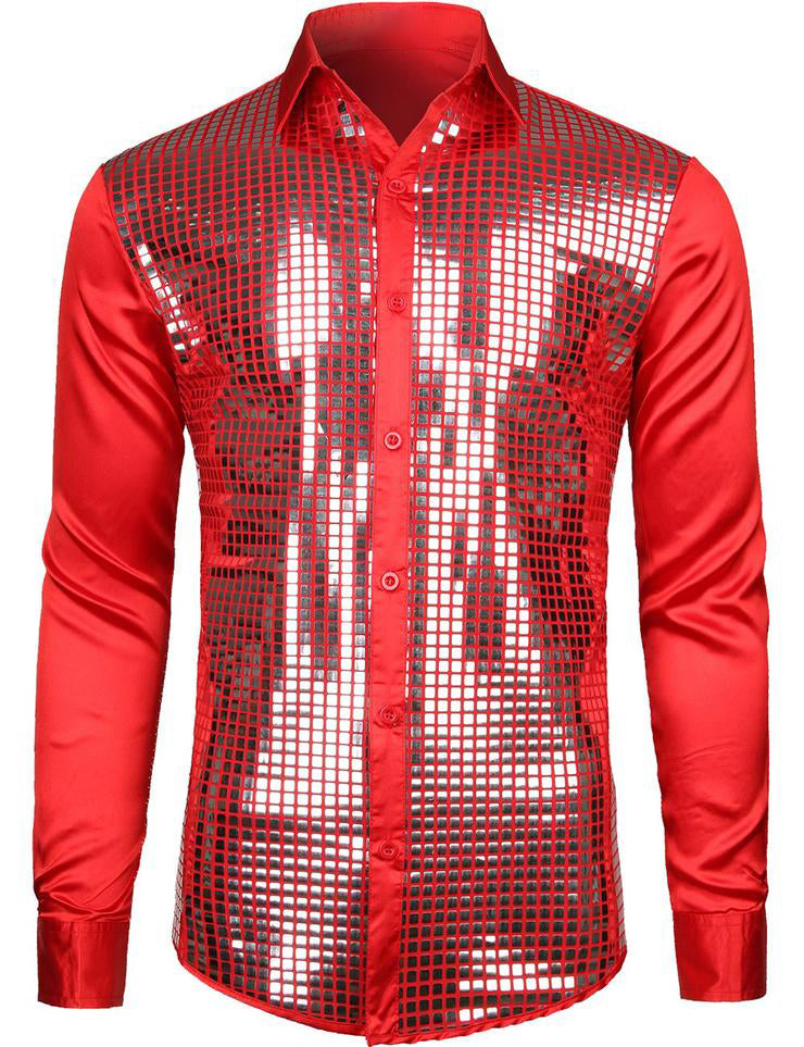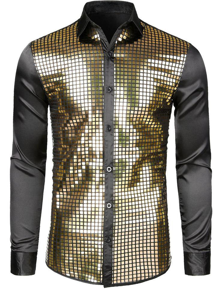 Chemise à manches longues boutonnée à sequins métalliques pour hommes