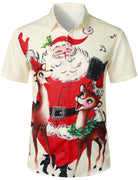 Chemise de Noël à manches courtes pour homme beige Vintage Santa Claus Elk Print Xmas